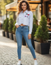 A classic smart casual top featuring midi-length sleeves with rolled-up cuffs, a crisp collar, and a solid color finish.
