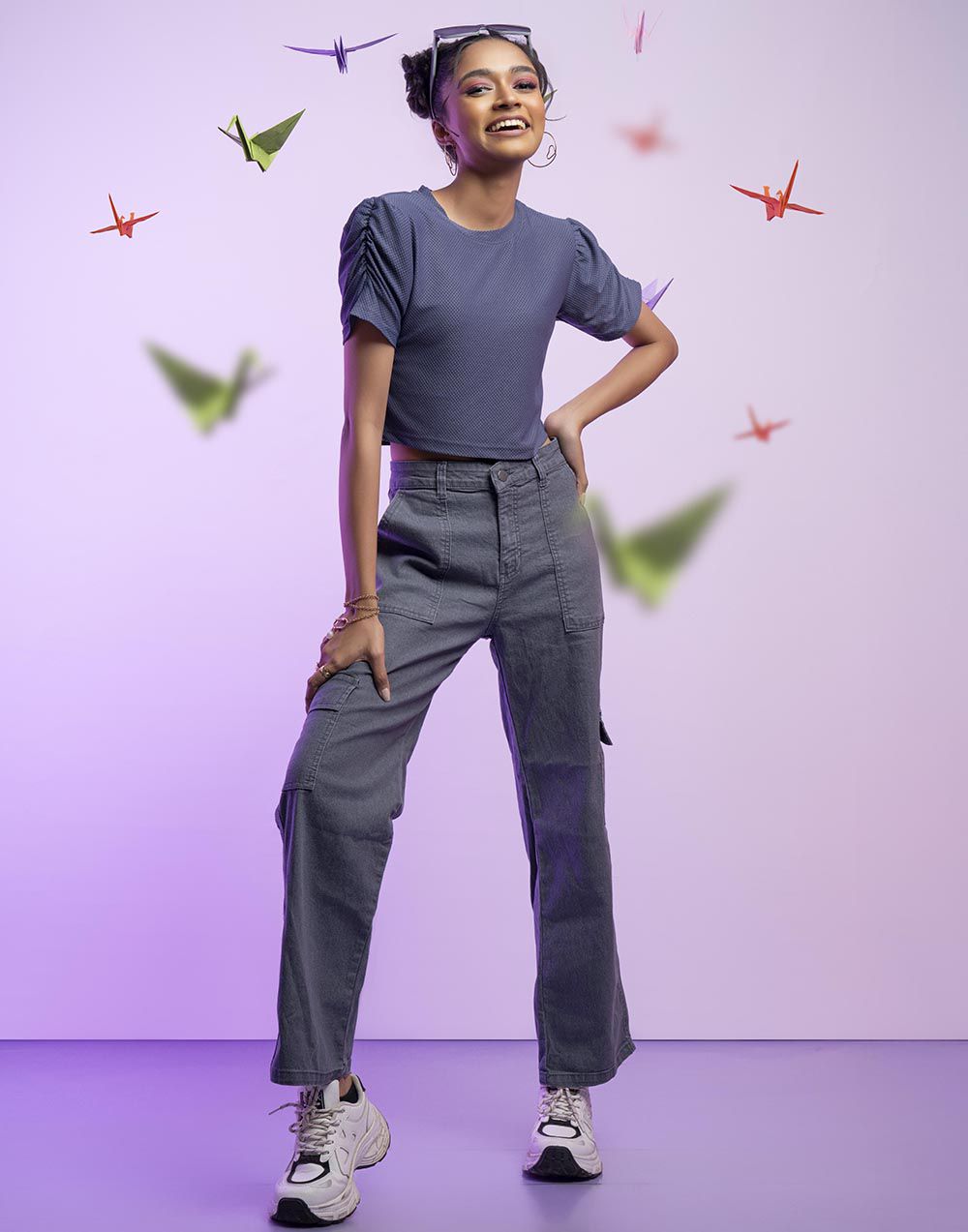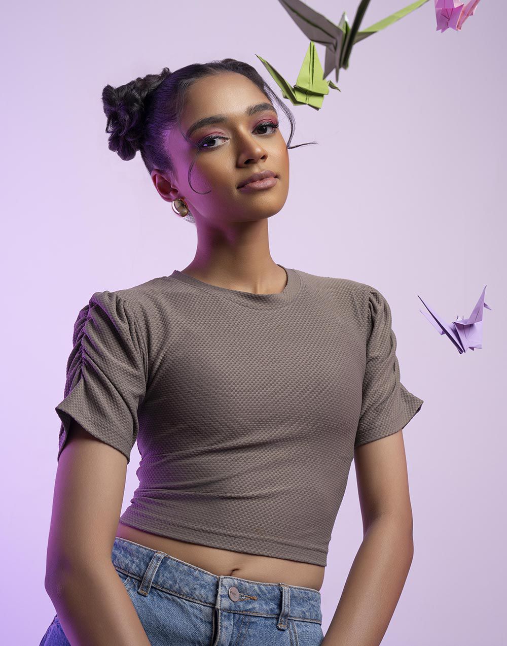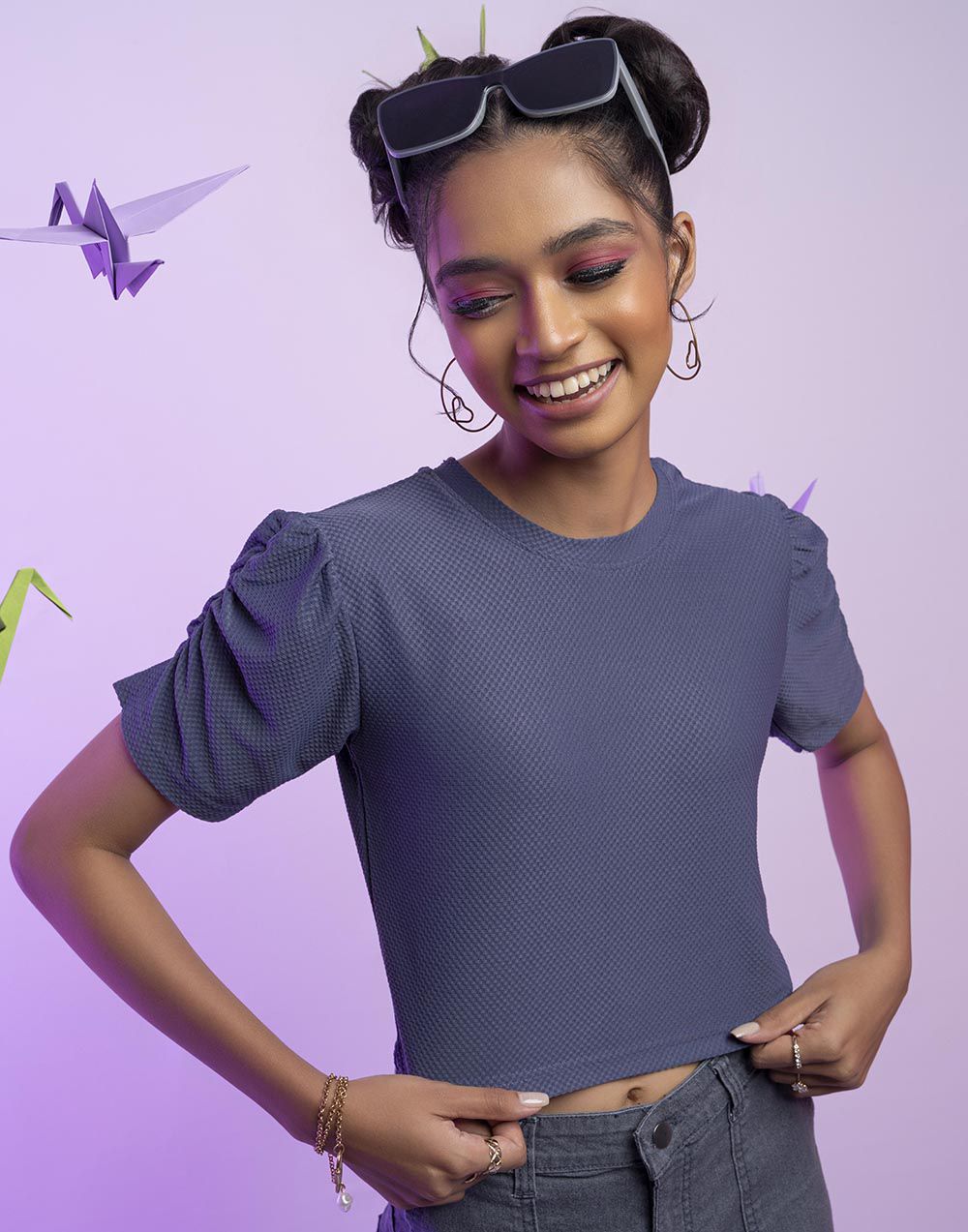 SHORT SLEEVE BODYCON CROP TOP WITH ROUND NECK LINE .