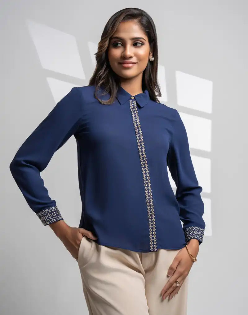 The perfect mix of classic charm and modern style. This collared top with intricate embroidery is a timeless piece with a contemporary twist.