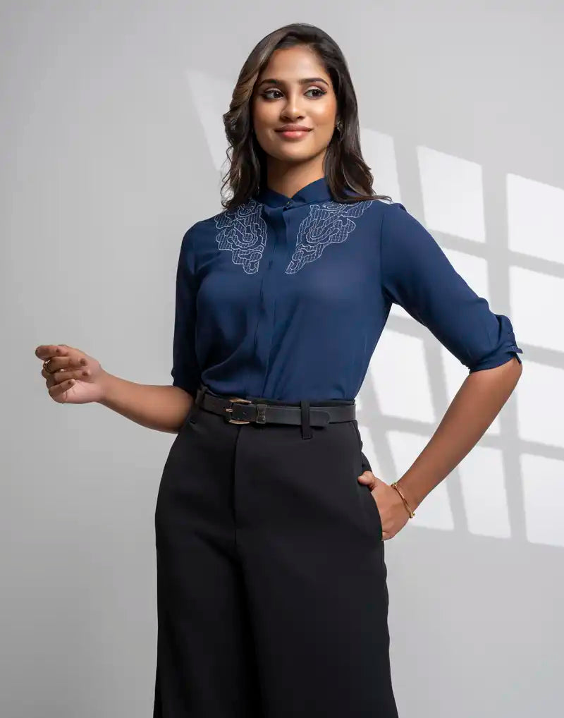 The perfect mix of classic charm and modern style. This collared top with intricate embroidery is a timeless piece with a contemporary twist.