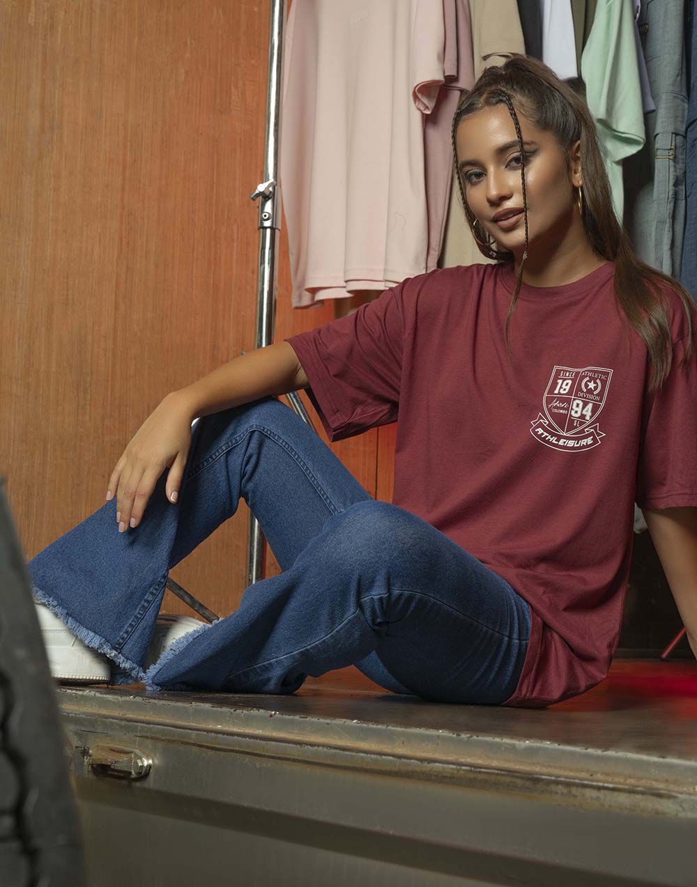 SHORT SLEEVE GRAPHIC OVERSIZED T - SHIRT WITH ROUND NECK LINE .