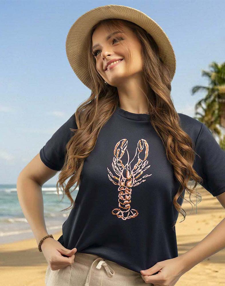 Women’s regular fit T-shirt with striking graphic print, short sleeves, and a round neckline.
