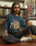 Oversized women’s T-shirt with striking graphic print, short sleeves, and a round neckline.