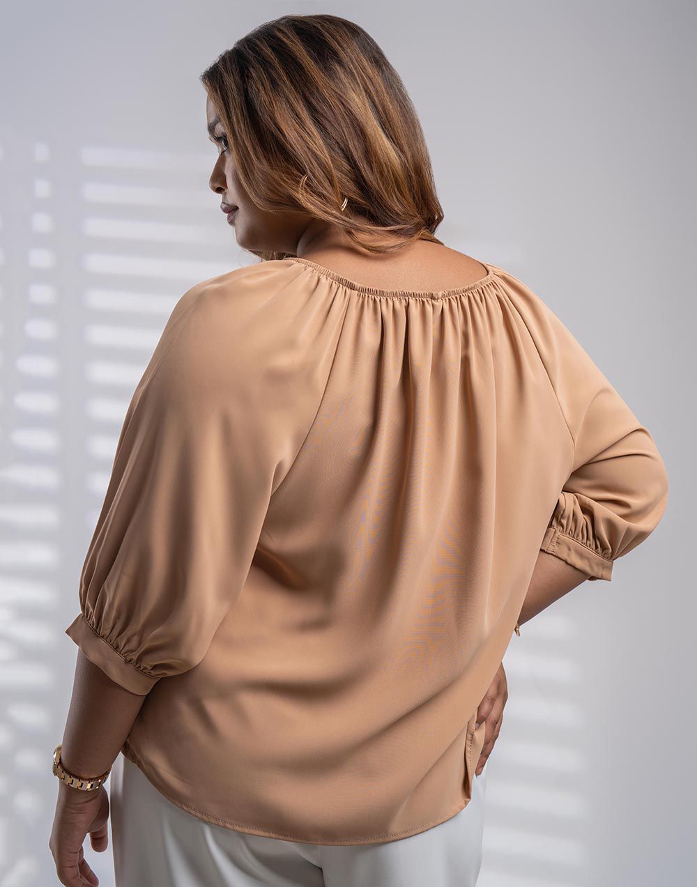 Elegant solid-colored formal top featuring midi-length sleeves and a soft, elasticated neckline for added comfort and style.