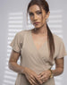 Short-sleeve, V-neck midi dress in a plain fabric, designed with a pleated skirt and adjustable tie-up waist.
