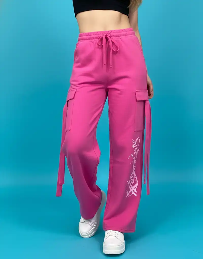 Single jersey cargo pant with four sides pockets and elastic waist.