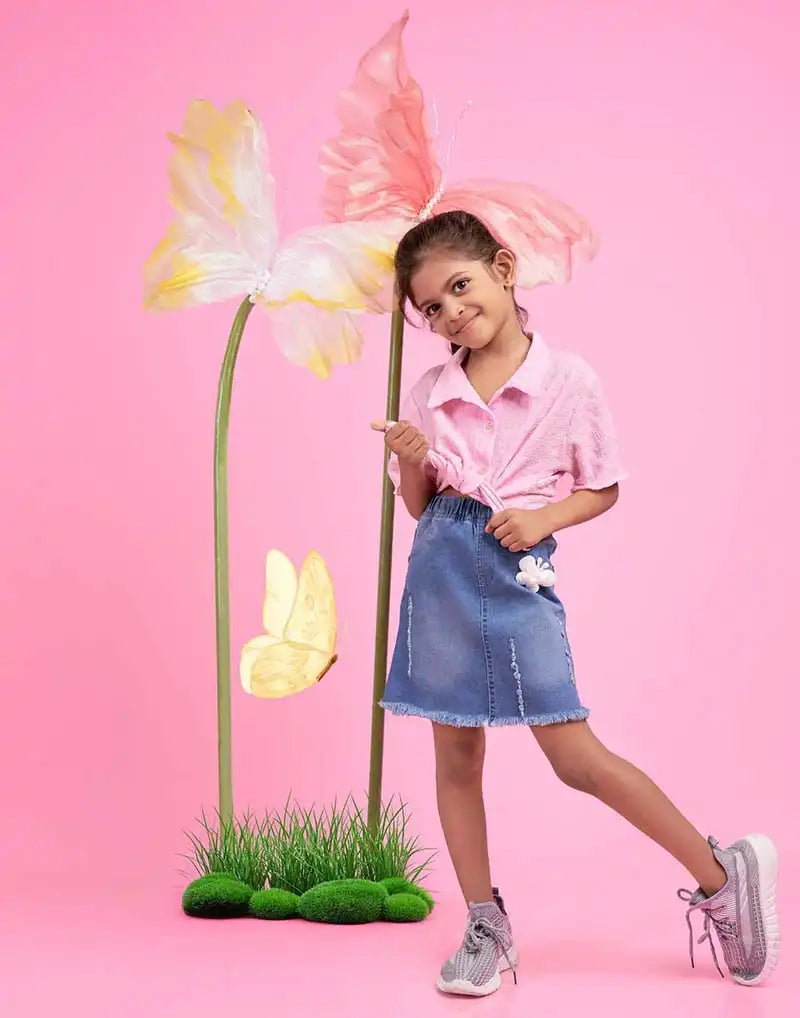 Girls’ short-sleeve textured shirt with full front button fastening.