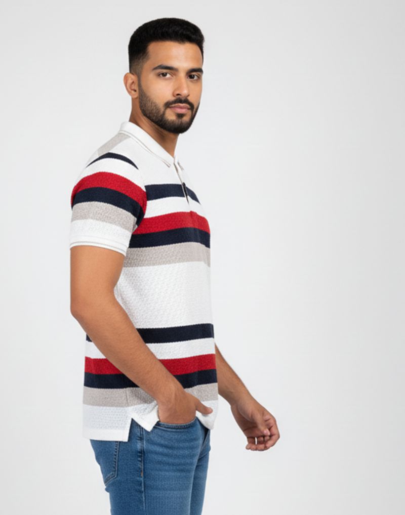 Upgrade your casual wardrobe with this Men’s Short-Sleeve Regular Fit Striped Polo Shirt. Featuring bold stripes, a sharp collar, and a sleek button placket, it combines modern style with unbeatable comfort. Perfect for pairing with jeans or shorts, this polo delivers a fresh, effortlessly cool look every time.