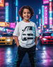Boys short  sleeve  graphic printed  T - shirt with round neck line .