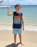 Boys short sleeve graphic printed T - shirt with round neck line .