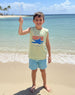 Boys short sleeve graphic printed T - shirt with round neck line .
