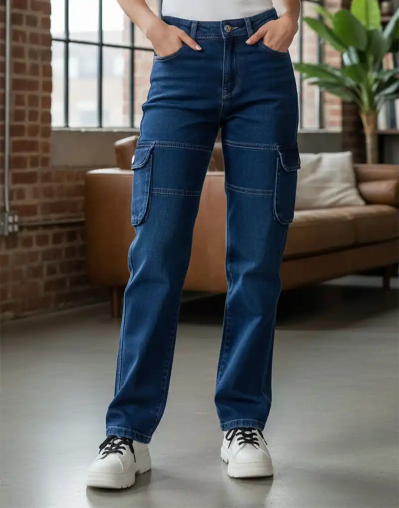 These stylish gray baggy jeans feature a wide leg and a flattering high rise fit, a button and zip fly fastening, finished with six side pockets. *Product image may differ to actual due to photographic lighting*