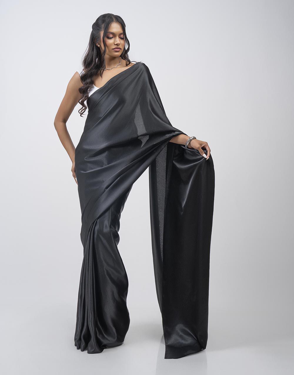 This plain silk saree Silk whispers stories of opulence and grandeur. Jacket piece included.