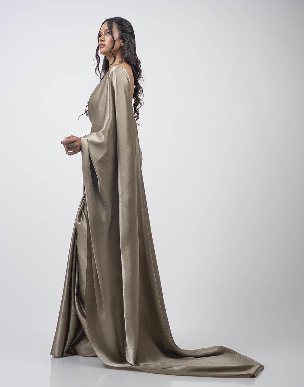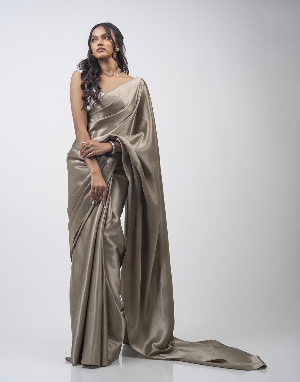 This plain silk saree Silk whispers stories of opulence and grandeur. Jacket piece included.