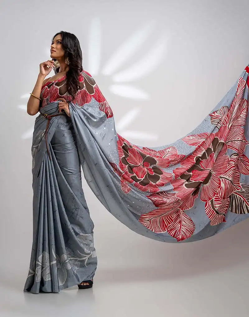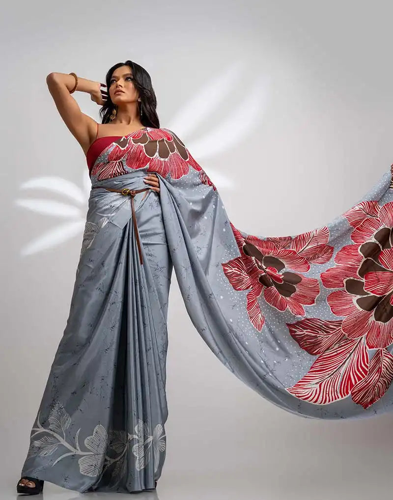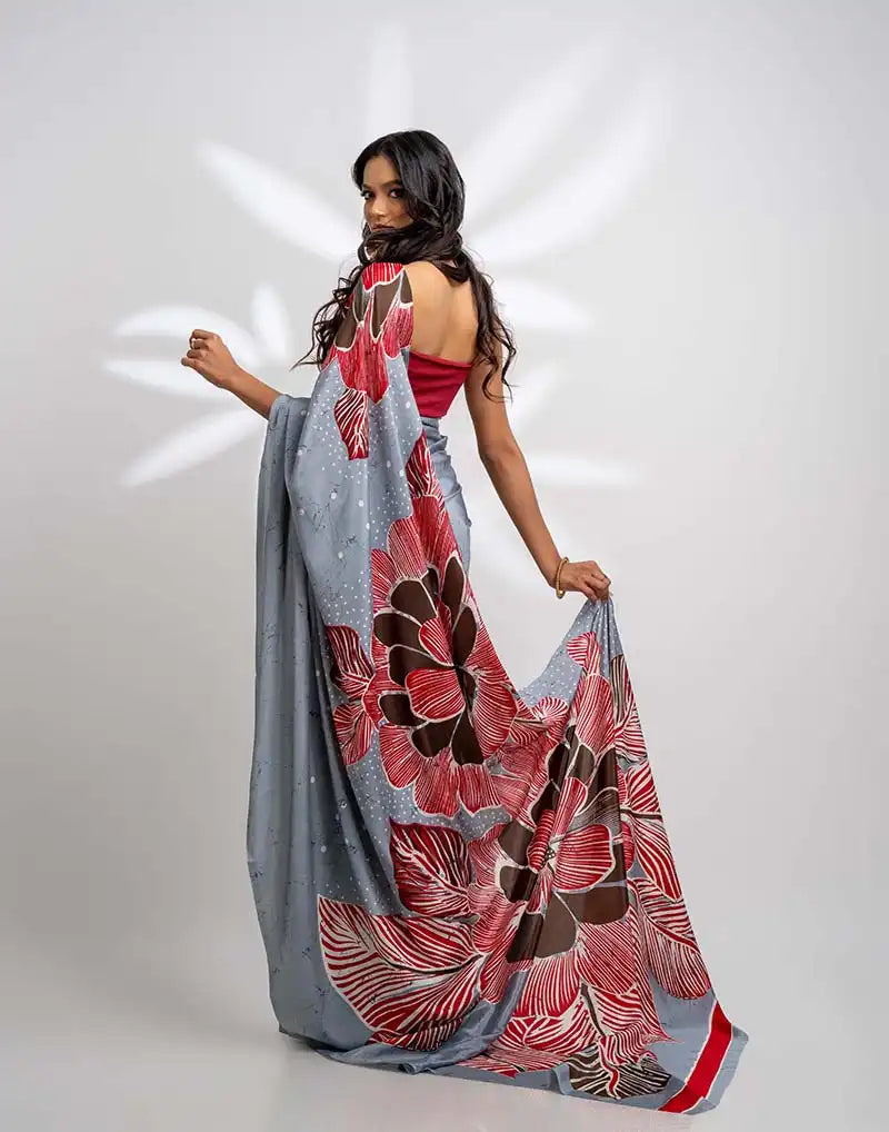 ETHNIC FUSION PRINTED BATIK INSPIRED SILK SAREE
