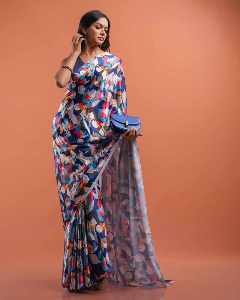ETHNIC FUSION PRINTED SILK SAREE
