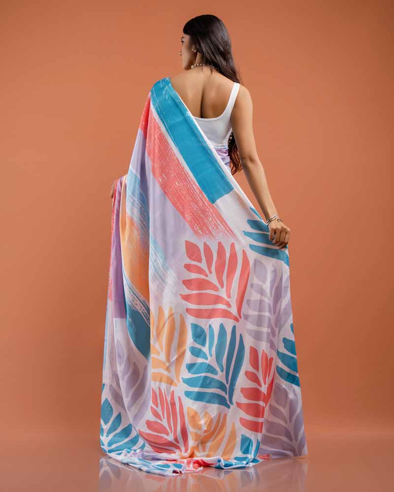 Experience timeless elegance in this printed batik silk saree — where every fold whispers stories of opulence and grace. Comes with a matching jacket piece.