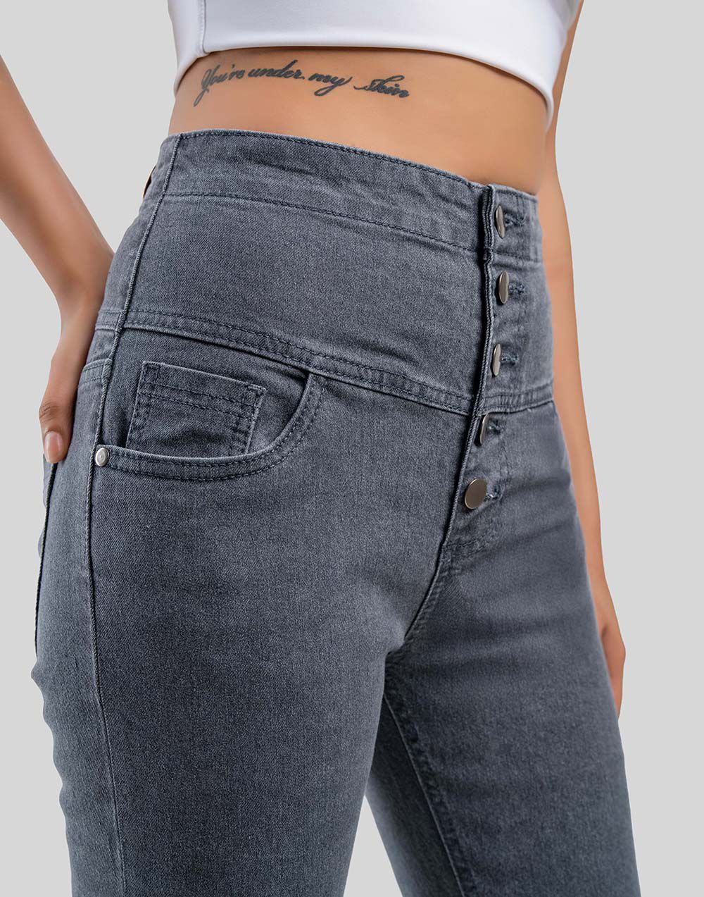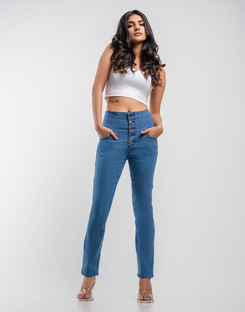 These slim-fit jeans are crafted in soft stretch denim for comfort and style, designed with a high waist, distressed finish, 5-pocket style, and five-button zip fly closure.
