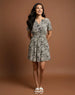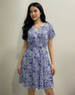 floral-print mini dress with a V-neckline and tie-up waist.