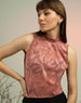 Elevate your look with our chic new sleeveless lace top in a soft dusty rose hue. This elegant and versatile blouse features a mock neck with a delicate ruffled trim and a sheer floral lace design, offering a blend of romance and modern style.