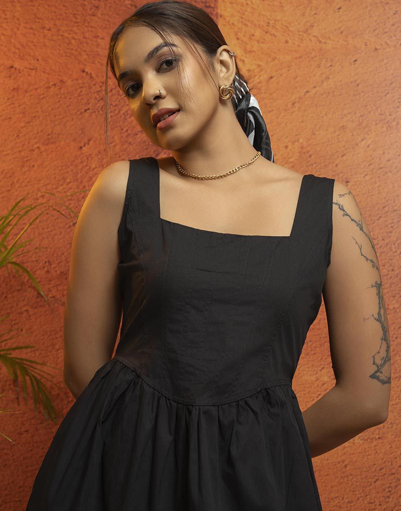 Step into effortless style with this cute and casual mini dress. The beautiful square neckline, and pleated bodice detail give it a charming, breezy look. Perfect for a sunny day out, this dress is a must-have for your wardrobe.