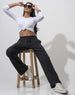 Elevate your everyday style with these full-length, wide-leg casual pants. Designed with an elastic waistband, a single front button, side pockets, and a zip-fly closure for comfort and effortless wear.