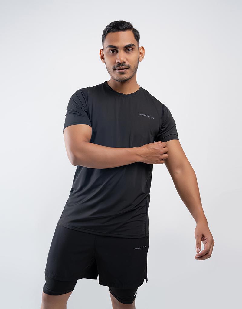 Activewear T-Shirt is made of high-performance moisture-wicking fabrics, fine durable stitches and export-ready production standards to give you the best value, lightweight ease and maximum comfort. The fit of the t-shirt falls between regular and slim. Relaxed on shoulders and neck, slightly slimmer yet comfortable on the body. A precise tailor-made fit to suit all body types. Crafted to emphasize muscle detail and form, this t-shirt ensures you look your best, whether hitting the gym or enjoying a relaxed outing.