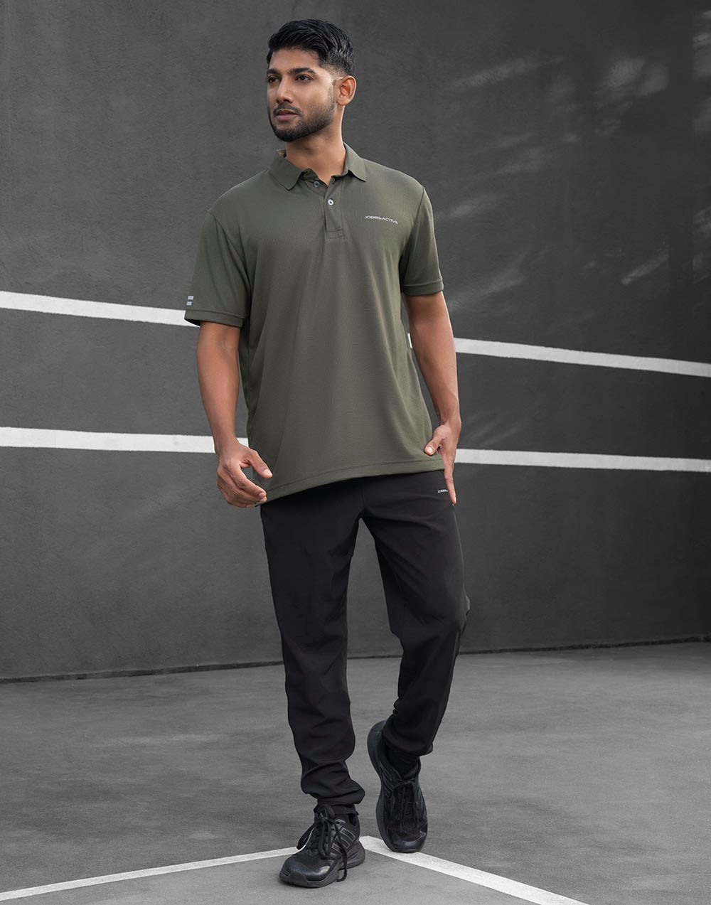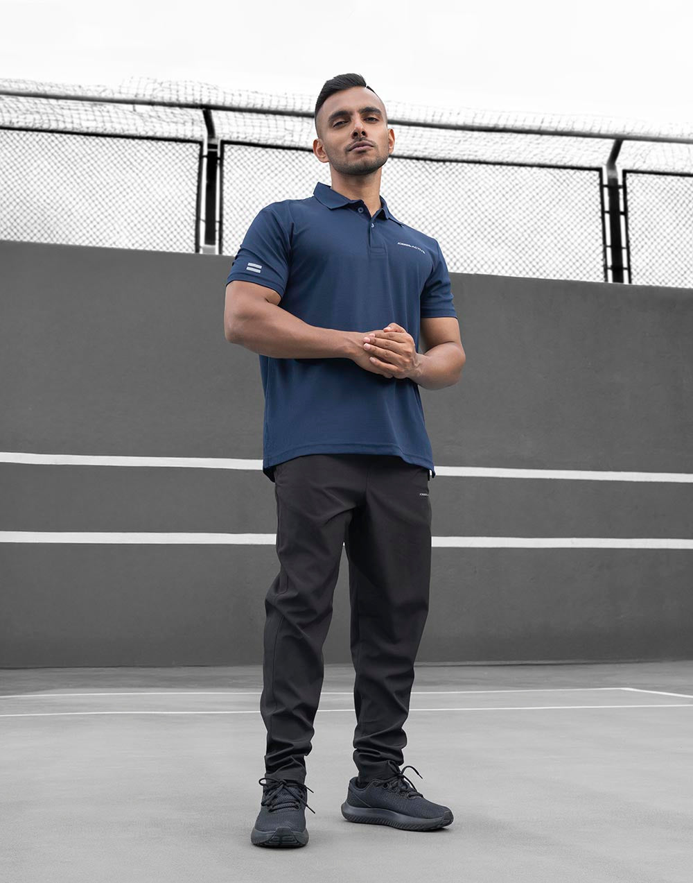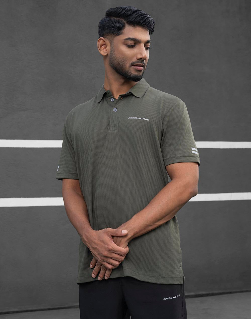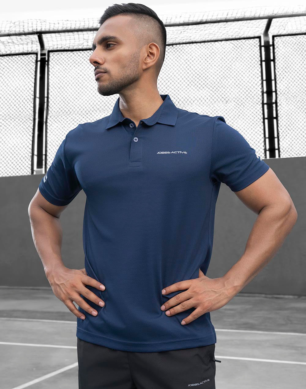 This collared activewear T-shirt is engineered from high-performance, moisture-wicking fabric to keep you cool, dry, and comfortable all day long.