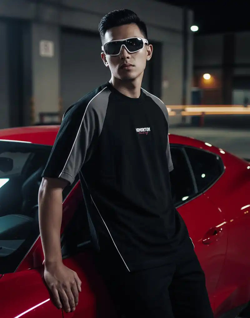 An oversized graphic T-shirt featuring short sleeves and a classic round neckline, designed for a relaxed and casual fit.