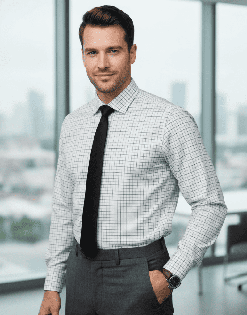 long sleeve formal slim fit shirt with full front button fastening with basic cuffs and collar.