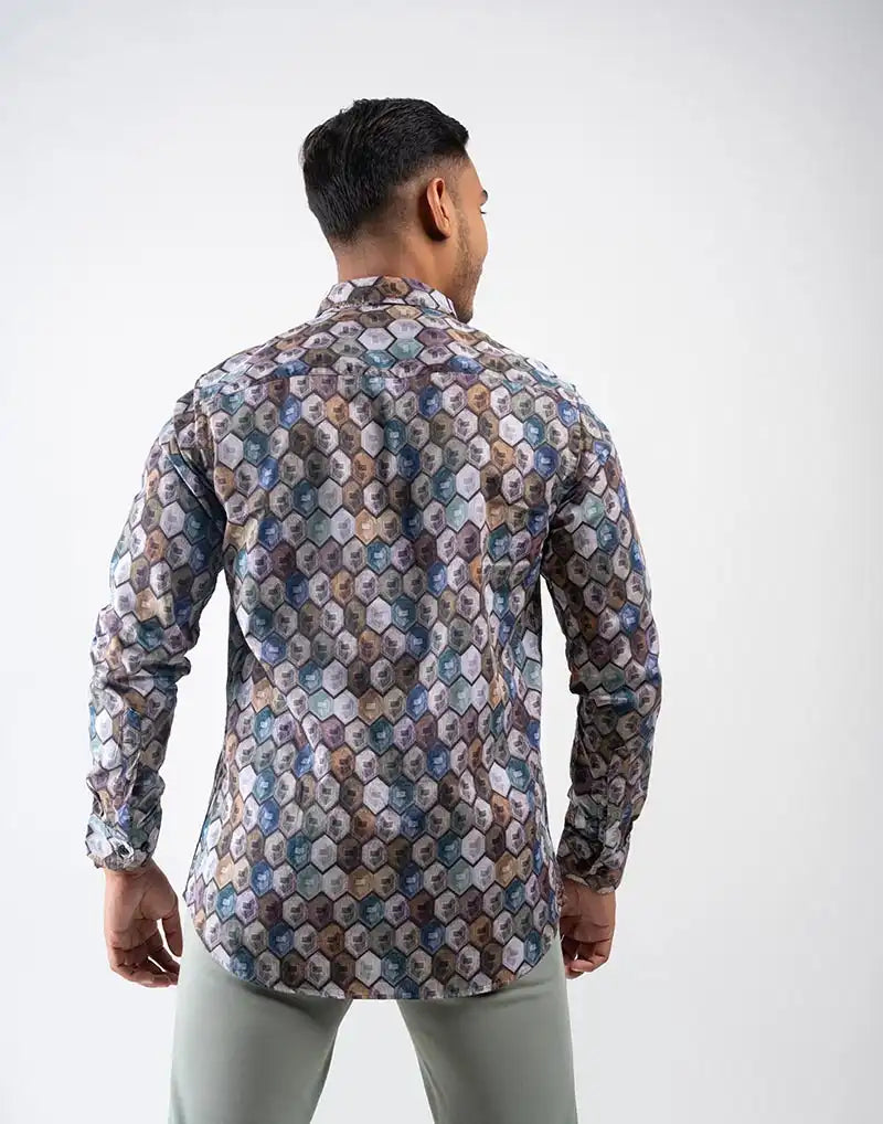 Elevate your casual look with this Long-Sleeve Printed Shirt, featuring a bold all-over print, full front button fastening. Designed for comfort and style, this lightweight shirt is perfect for everyday wear, vacations, or relaxed weekends.