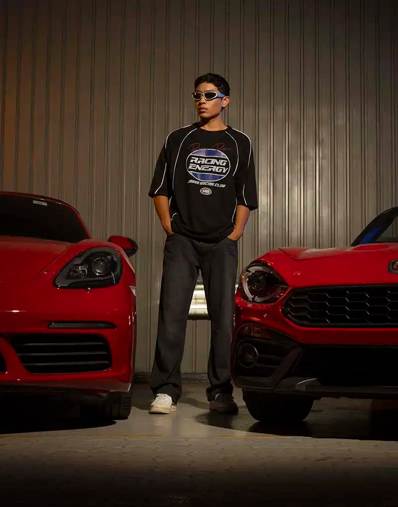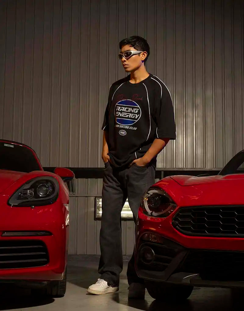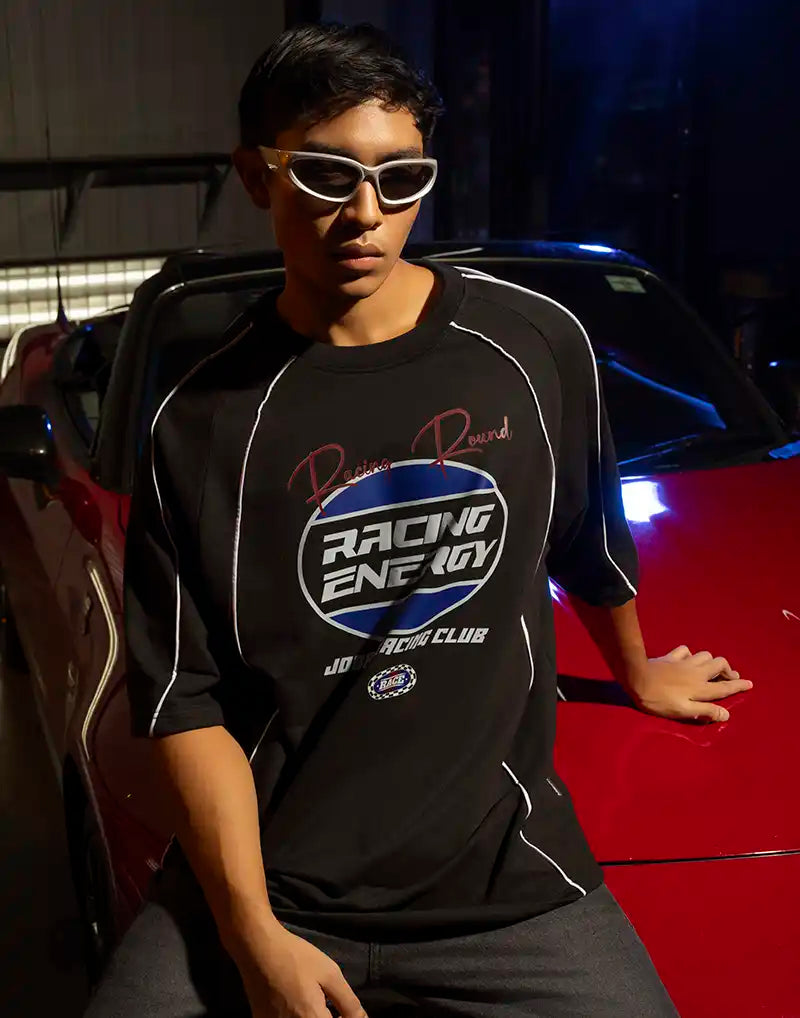 An oversized graphic T-shirt featuring short sleeves and a classic round neckline, designed for a relaxed and casual fit.