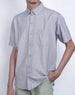 Short sleeves shirt with chinese collar and full front button fastening .
