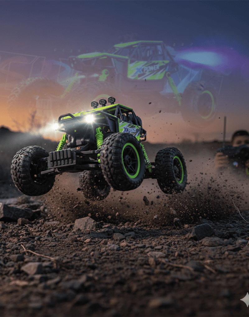 Off Roader Rock Climbing Rechargeable Truck With Remote Control Toy For Kids Drive On Sandy, Rocky, Grassland, Multicolor. This model is equipped with full-scale synchronous control functions such as forward, backward. Box Dimension :- Height – 11”Inches / Width- 6.”Inches Colours : Red / Green *Product image may differ to actual due to photographic lighting*
