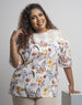 A chic floral print top featuring mid-length sleeves and a classic round neckline. Perfect for effortless everyday style.
