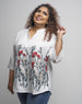 Elevate your everyday look with this plus-size floral embroidered top, designed with elegant midi sleeves, a refined Chinese collar, and three-button front fastening for a touch of charm.